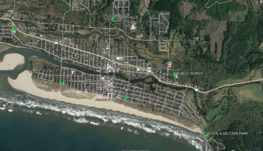 The City of Seaside operates an Emergency Warning System composed of a series of speakers mounted on poles around the city. A map of these locations is posted below. In the event of a sudden emergency such as a distant tsunami, the warning system will be activated to alert individuals of the threat. The sirens emit an intermittent 3 minute blast. The Emergency Warning system is not intended to be audible indoors, but to warn those near the water along beaches, docks and estuaries to move to higher ground. To receive warnings inside your home or business, purchase a NOAA Weather Radio for your home or sign up for mobile alerts.